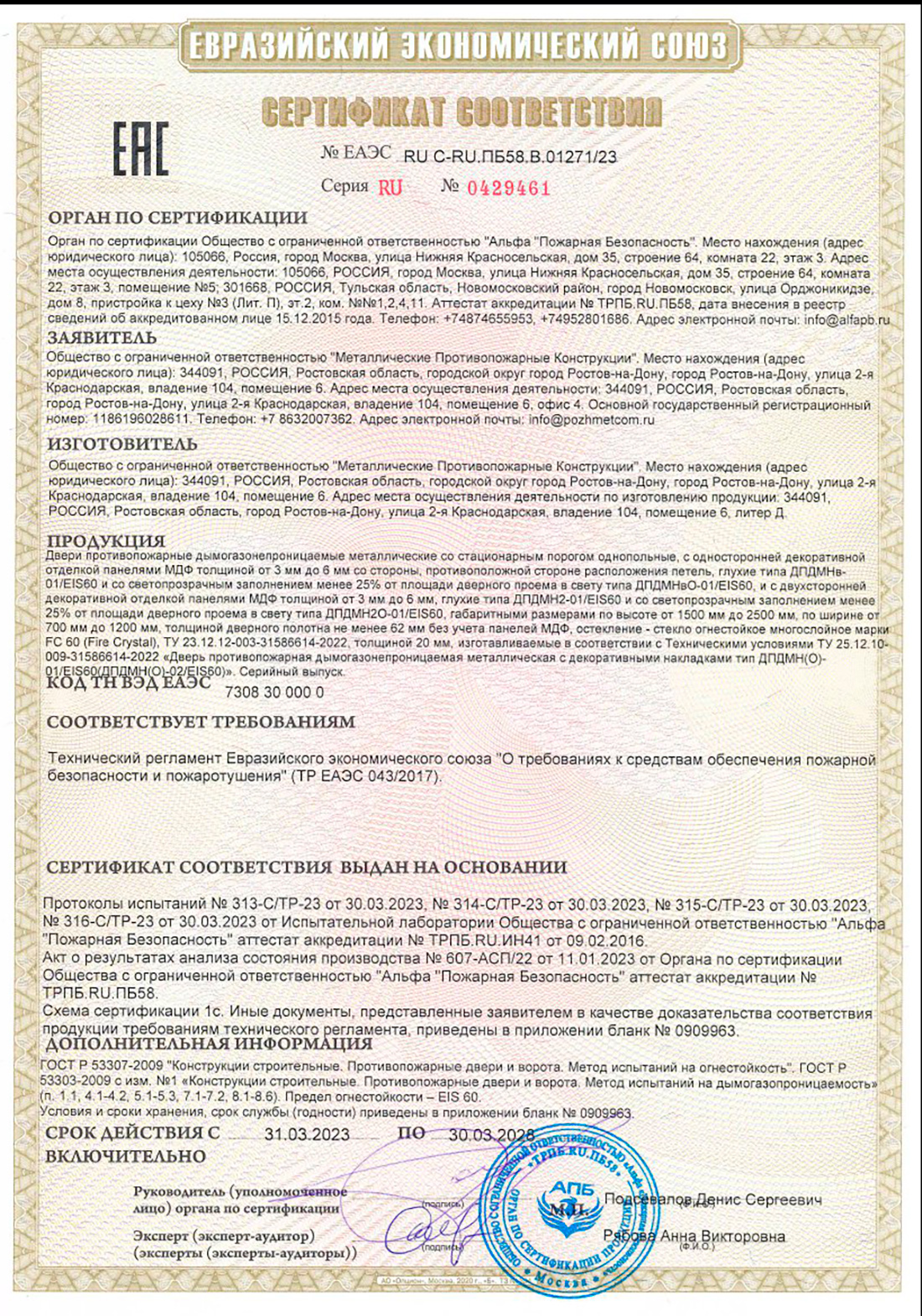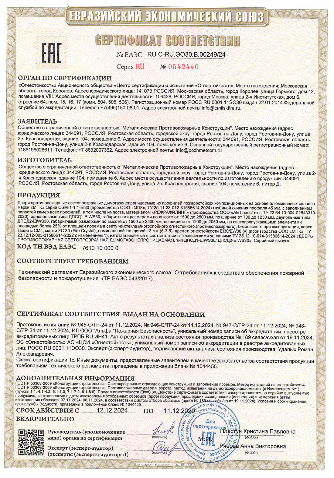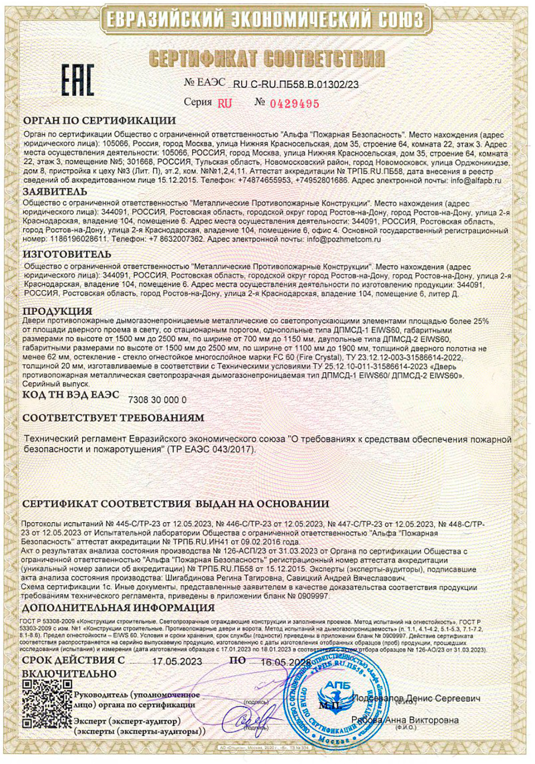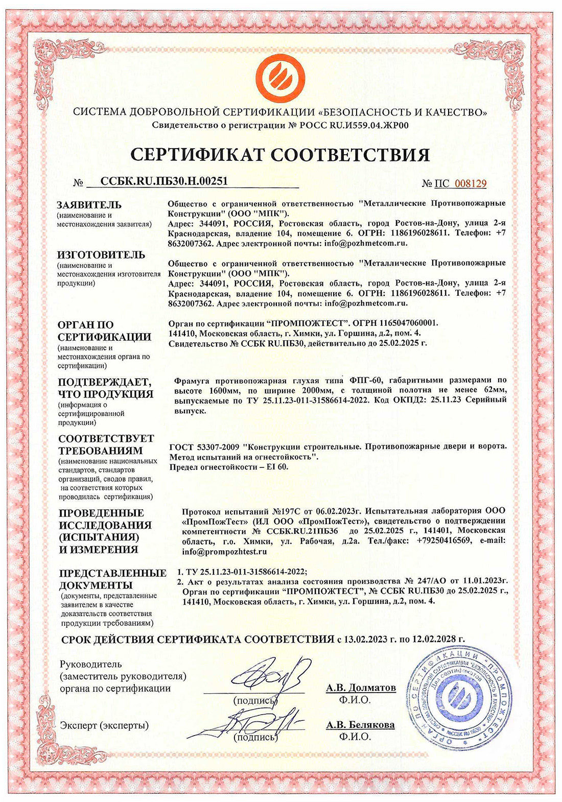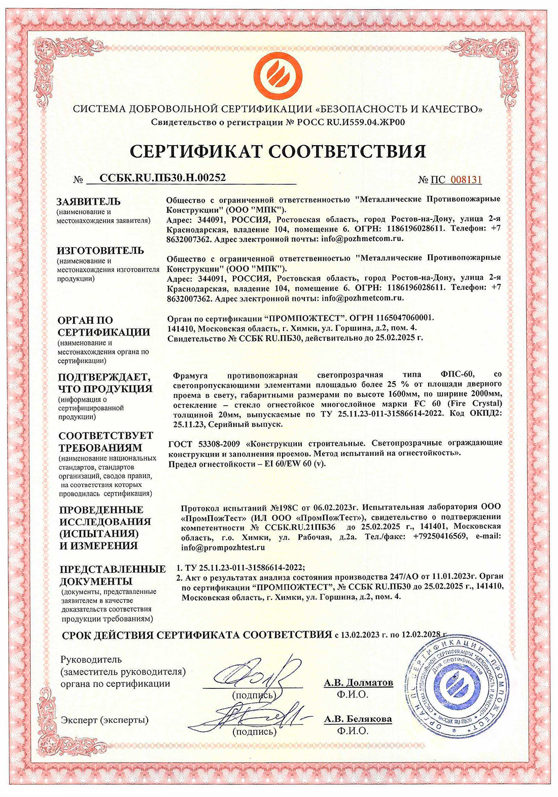 ШИРОКИЙ АССОРТИМЕНТ ПРОТИВОПОЖАРНЫХ КОНСТРУКЦИЙ